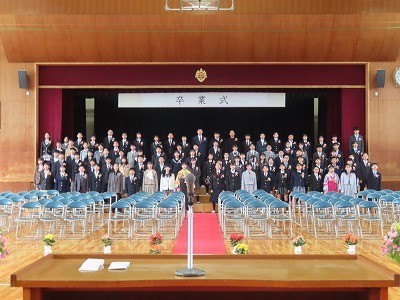 96名が巣立ちました。卒業証書を受け取る姿がすてきだったことはもちろんのこと、気持ちのこもった別れの言葉、最後の合唱は体育館いっぱいに歌声が響き渡りました。温かい雰囲気の心に残る卒業式になりました。支えてくださった地域の皆様、保護者の皆様に感謝申し上げます。96名のが卒業するとさみしくなりますが、新しいステージでの皆さんの活躍を願っています。卒業おめでとう!!