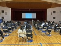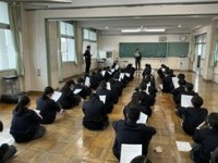 3月11日(水)に、野外教室説明会を行いました。学年の職員が、実際に野外教室で身に付ける衣服を着ての説明会となりました。生徒、保護者の皆さんに情報がより伝わったと思います。
