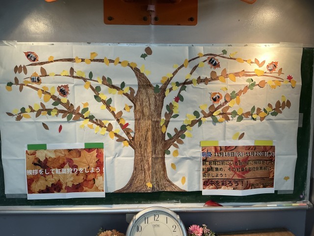 あいさつ運動三日目です。とてもきれいな紅葉になりました。
