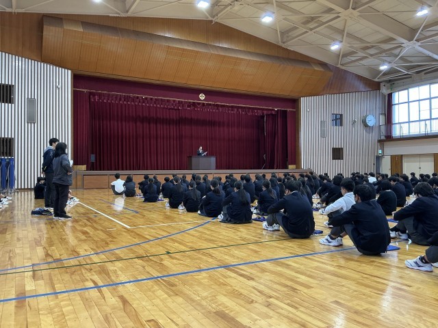 校長先生から、「日常に潜む危険」というテーマでお話がありました。自転車についての法律が厳しくなり、特に自転車を運転しながらのスマートフォンの操作は非常に危険です。自転車に乗るときは、交通事故の被害者にも加害者にもならないように気を付けましょう。
