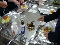 献立は、「鮭のホイルちゃんちゃん焼き」です。各グループで協力して、意欲的に調理に取り組んでいました。