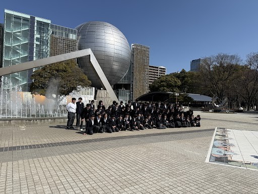 天気が良いですね!集合写真を撮り、科学館に入りました。