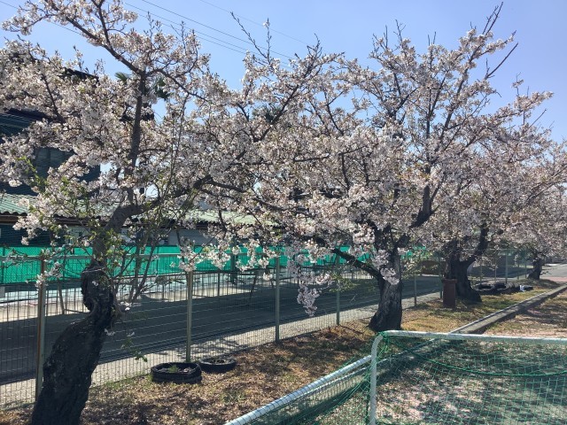 グラウンド南側に咲いている桜がきれいですね。この桜のように、私たちの心もきれいで、美しくありたいですね。